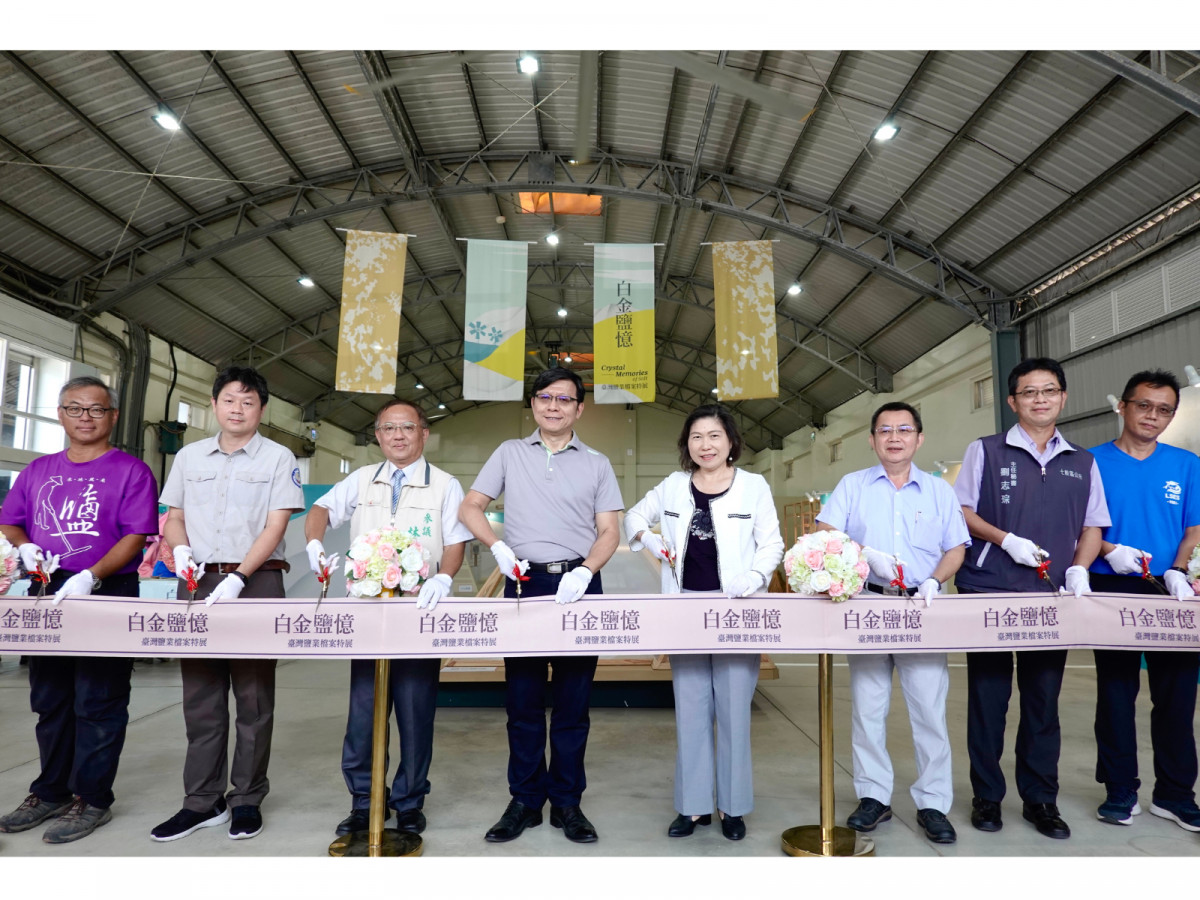 「白金鹽憶─臺灣鹽業檔案特展」開展典禮,由國家檔案局副局長陳美蓉、臺鹽公司總經理陳世輝、觀光署雲嘉南濱海國家風景區管理處處長陳煜川、台南市政府參議林振祿、台江國家公園管理處秘書洪政乾、七股區公所主秘劉志琮、嘉義縣布袋嘴文化協會總幹事蔡炅樵等共同揭幕。