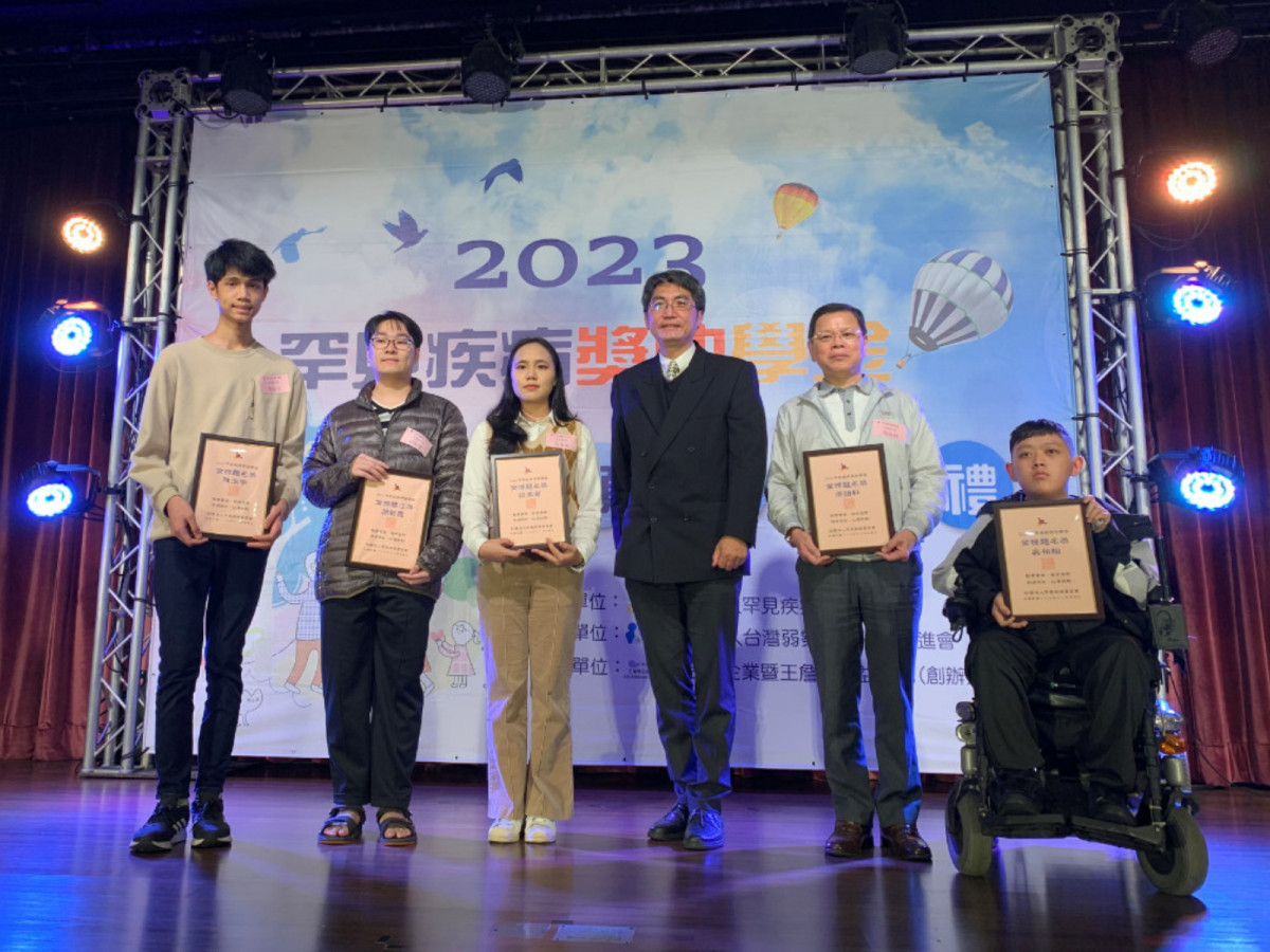 罕見疾病基金會於11月25日舉辦獎助學金頒獎典禮,由王詹樣公益信託代表台塑企業總管理處社會公益組組長王秉琛代表出席,與罕見疾病基金會蔡輔仁董事長、衛生福利部薛瑞元部長、國民健康署魏璽倫副署長、中央健康保險署李丞華副署長、立法院林志嘉秘書長、吳玉琴委員等貴賓一同勉勵病友。