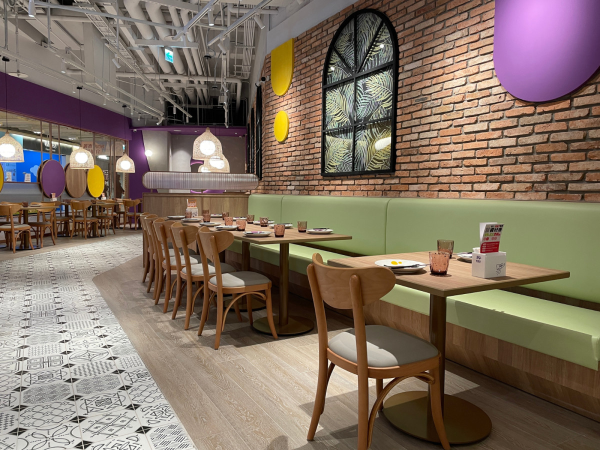 而「饗泰多 泰式風格餐廳」台中麗寶店,不僅是該品牌台中第一家、也是全台第14家分店。總面積117.9坪,一個有136個座位數,整體風格延續以往Chill&Fun的品牌調性,明亮繽紛的設計主軸,結合了麗寶水上樂園的歡樂景象,處處可見品牌代言人小象哥暢遊樂園玩耍的可愛身影。
