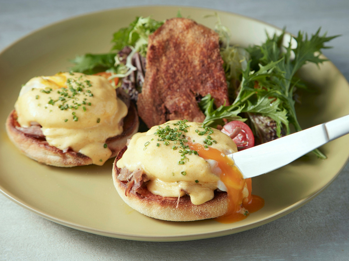 又或是「油封鴨腿班尼迪克蛋、綜合沙拉」選用歷經香料醃製、低溫慢烤24小時的宜蘭櫻桃鴨腿入鍋煎至表皮酥香,扎實馬芬搭配柔嫩水波蛋、酸香濃滑荷蘭醬及鹹香油封鴨腿一起享用,讓經典美式餐點洋溢法式優雅。