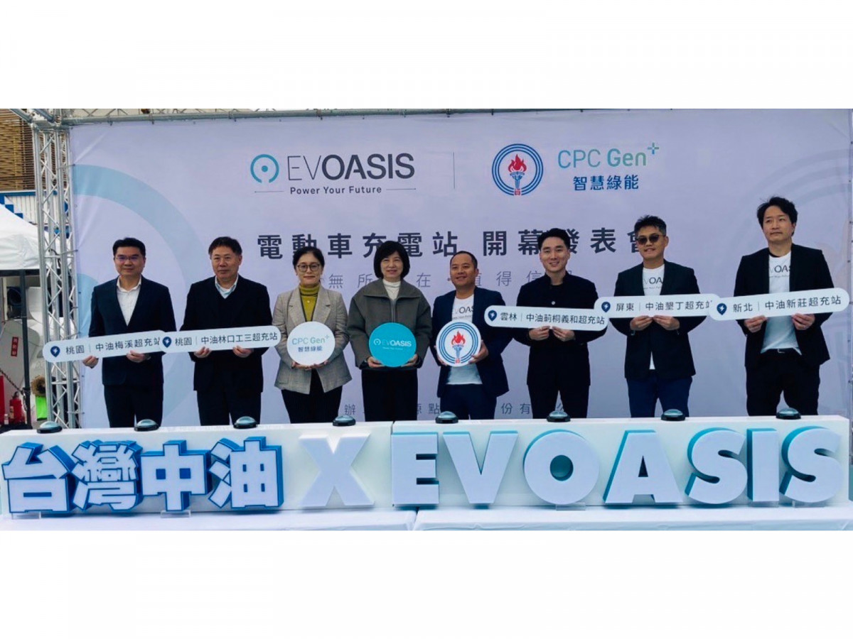 EVOASIS日前於桃園市龜山區林口工三加油站舉辦「電動車充電站」開幕儀式,揭開雙方合作經營序幕,代表著雙方對於台灣能源轉型的重視,建立良好的充電網絡,提供消費者優良的充電環境。