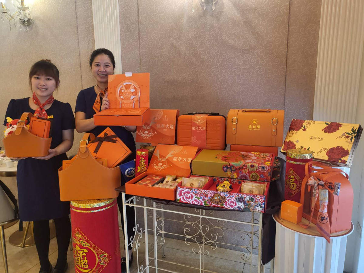 法布甜執行長張淑卿表示,法布甜今年春節推出15種禮盒,價位從399元的平價蝴蝶酥,到2380元的貴婦級限量聯名柏金包都有,主力產品則在1000元以下,包括經典馬卡龍鳳梨酥禮盒、品牌絲巾包、龍年行大運禮盒等等,聯名款的林聰明、萬客什鍋禮盒,則都是599元!