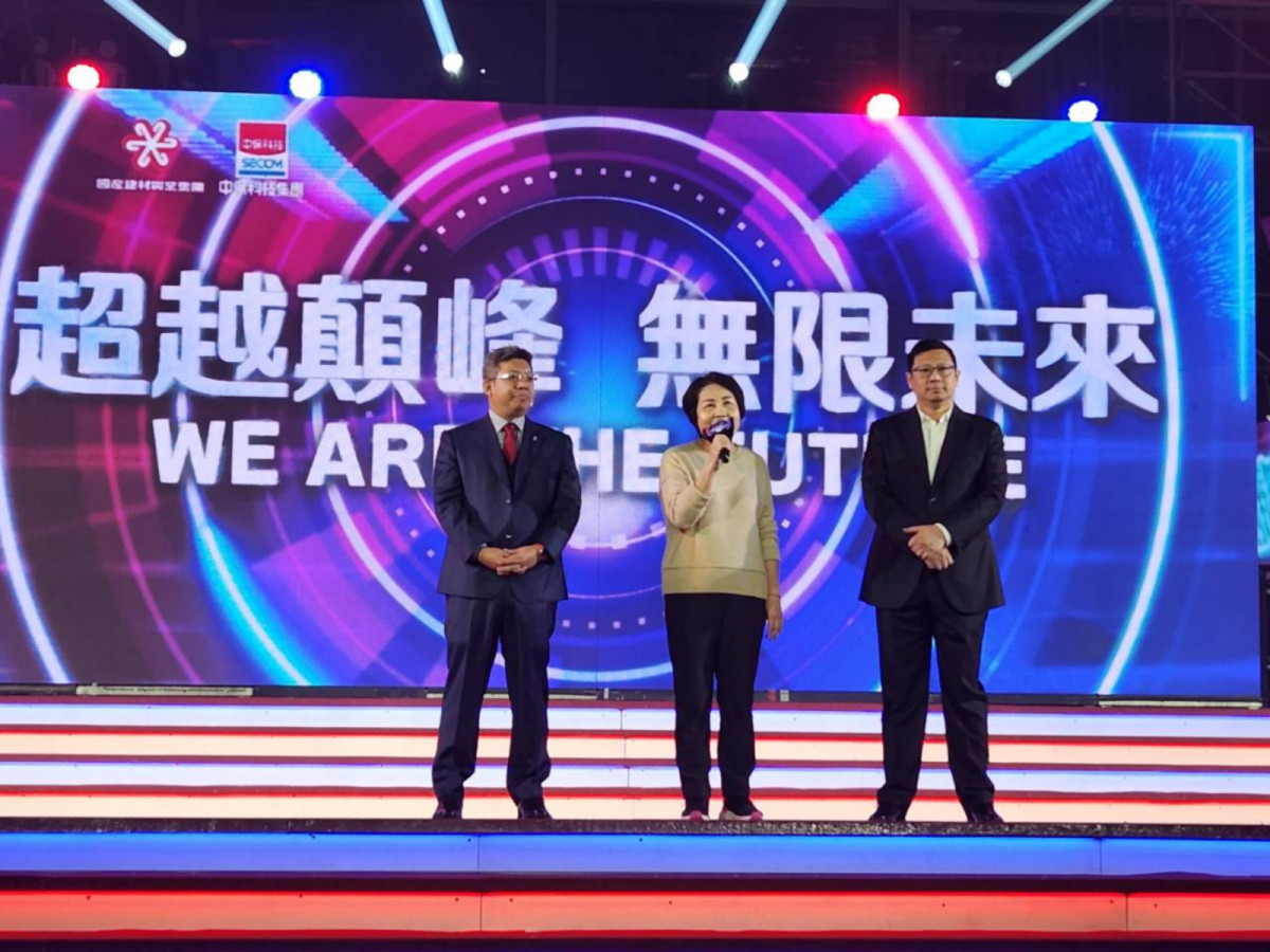 圖片說明:國產建材董事長徐蘭英(圖中)及中保科董事長林建涵(左),及國產集團副總裁林明昇(右)共同在旺年會上,感謝員工過去一年的付出。