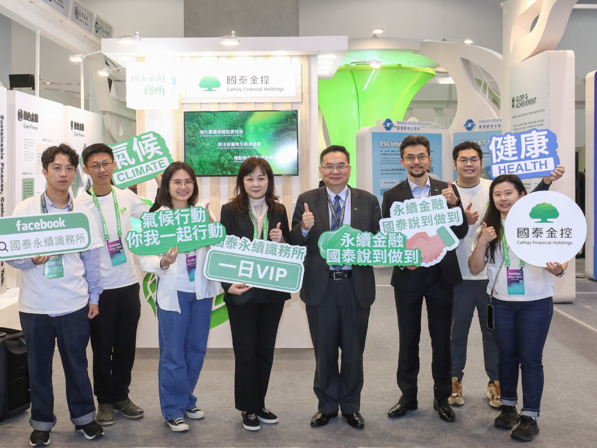 國泰展區第二大亮點則是「綠色金融」,包括透過綠色保險、綠色存款、綠色授信、永續連結貸款、永續發展債券等綠色金融商品,以及各項挹注再生能源轉型指標性專案,協助跨領域產業進行永續轉型。