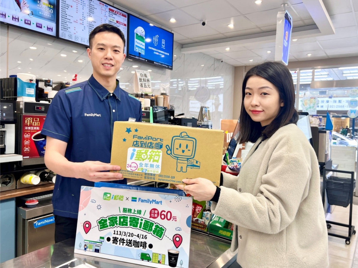 此次再與全家便利商店聯手推出「國內包裹店寄i郵箱」,係首次將與超商合作業務擴大至國內包裹,凡尺寸最長邊不超過45公分,長寬高合計不超過105公分且重量在5公斤內之包裹,皆可透過「全家」店舖寄至i郵箱取件,資費划算又方便。