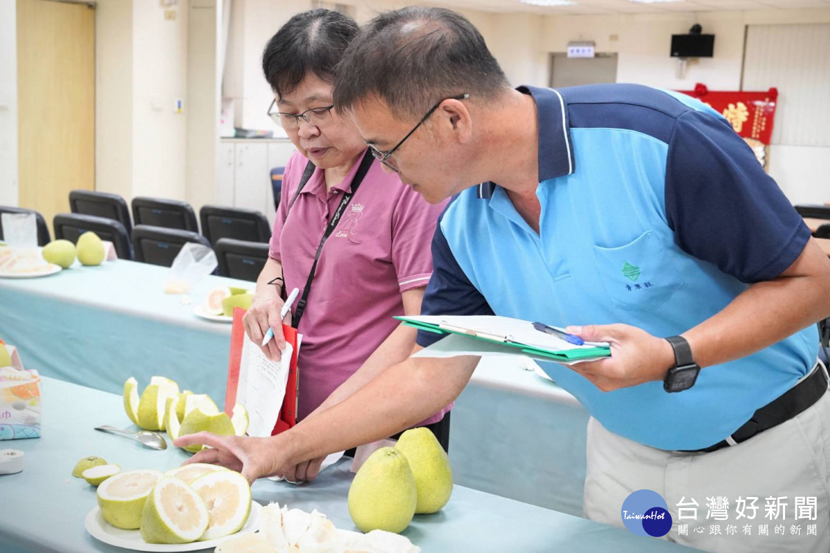 新北市農會今(5)日舉辦新北市113年文旦柚果品評鑑競賽,由張讚群獲得冠軍殊榮,柯進益獲得今天甜柚王,甜度高達13.1度,農業局長諶錫輝及新北市農會三首長出席頒獎,並指7日、8日於八里左岸永續環境教育中心前廣場舉辦文旦柚展售會,以及 9月13日前至八里區農會電商平台「小農電舖直銷站」購買文旦柚享優惠。