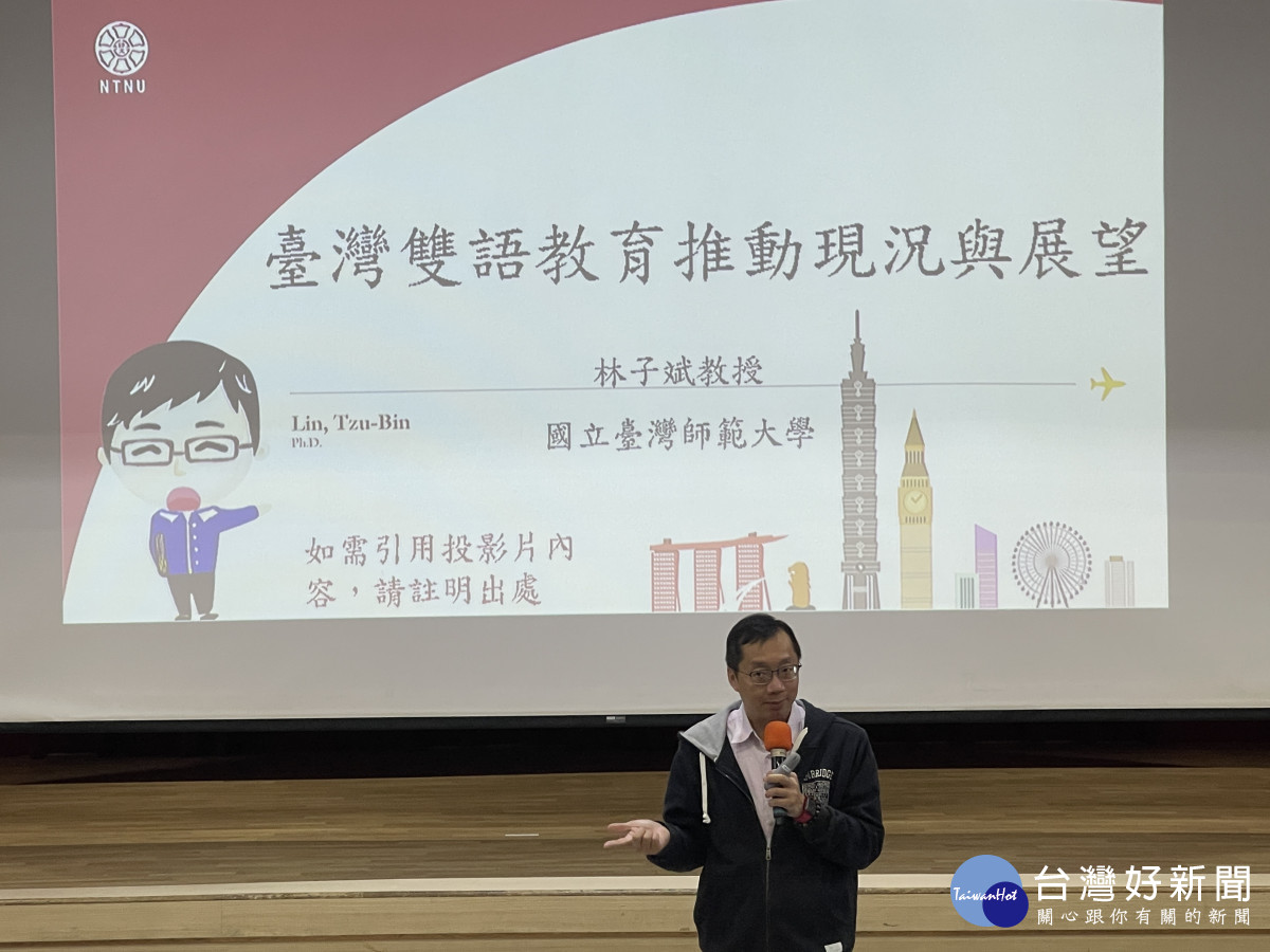 此外,為達成2030新北雙語城的願景,國小階段為培養學生的國際語言力的重要關鍵期,因此邀請雙語教育計畫的推手林子斌教授分享雙語教育議題面面觀,林教授從政策面與實務面出發,分享實踐雙語教育的寶貴經驗及心得,確實協助各校掌握實施雙語教育的訣竅。