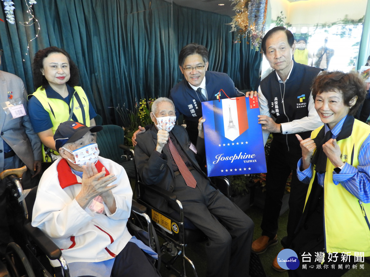 知道板橋榮家長輩百歲長輩到101登高,輔導會就養養護處長周興國特地前來陪同長輩同遊;台北市政府游適銘副秘書長帶領台北市兵役局李治安局長及服務團隊也前來關懷問候長輩,致贈對健康很有幫助的石墨烯健康被。