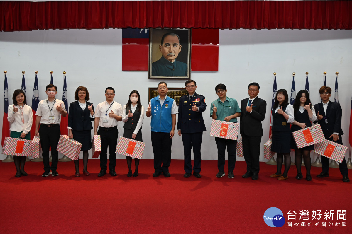 苗栗縣政府秘書長陳斌山日前代表縣長鍾東錦出席苗栗縣警察局月報,表揚國泰世華銀行苗栗分行等12名成功攔阻詐騙有功人員,肯定金融機構與警方密切合作,協力守護民眾財產安全,展現強大防詐能量。