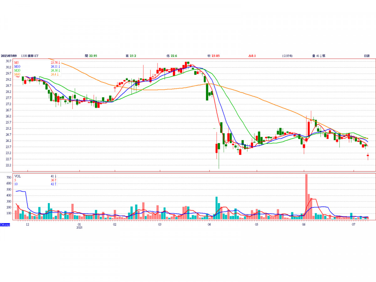 汽車OEM廠廣華-KY(1338)今日公佈114年6月合併營收為新台幣4.62億元,較上月營收增加15.1%、較去年同期增加12.2%;114年第二季合併營收為新台幣12.23億元,較今年第一季減少5.8%;累計114年1至6月合併營收為新台幣25.2億元,較去年同期小幅增加1.29%。