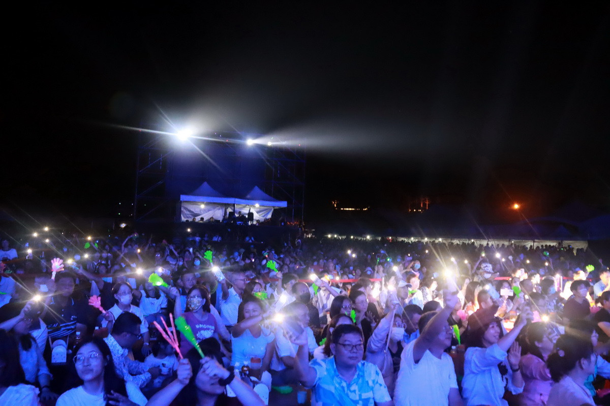 大家齊聚在露天夜空下享受一曲曲好聽的民歌。(縣府提供)