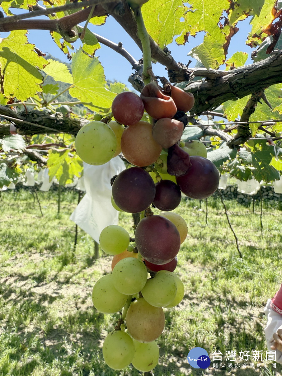 豪雨後南投縣葡萄呈現外觀受損嚴重。(縣府農業處提供)
