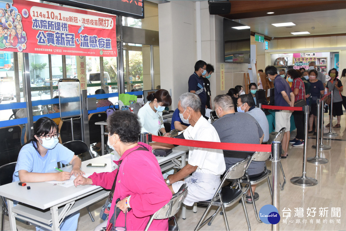 公費疫苗將分階段開打,首波自10月1日起,對象包括65歲以上長者、55至64歲原住民、孕婦、BMI大於等於30的個體或有慢性病、重大傷病患者及醫療防疫人員。11月起再開放50至64歲的健康成人。成人肺炎鏈球菌疫苗的接種對象為65歲以上長者、高風險族群及洗腎病人。施打地點為總院一樓大廳,服務時間為週一至週五上午8:30至12:00,下午14:00至17:00,週六上午8:30至12:00,服務至疫苗用罄為止。