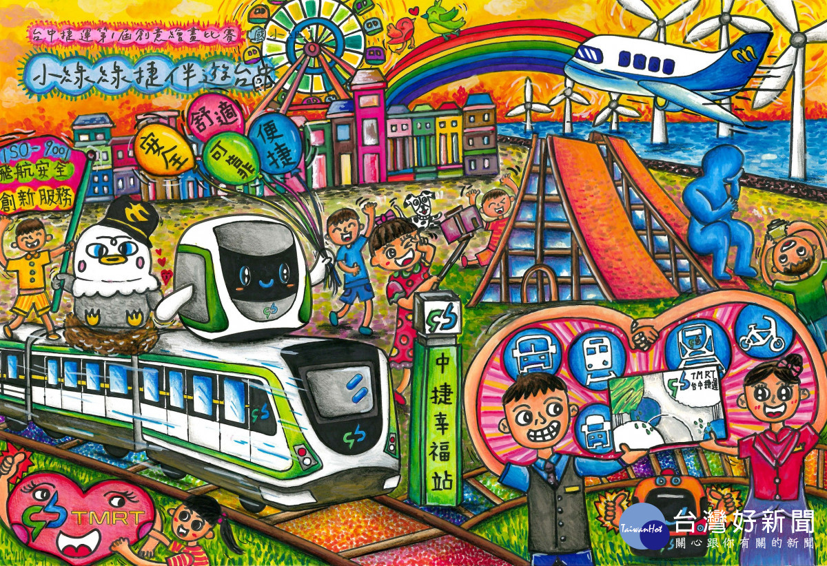 台中捷運公司今年特別攜手華信航空,以「小綠綠捷伴遊台中」為主題,舉辦首屆兒童繪畫比賽,邀請小朋友透過畫筆描繪對台中景點的熱愛與想像,搭配「雙十國慶,晚會在台中」盛事發揮創意。比賽共吸引539件作品參與,最終評選出各組優選3名及佳作10名,得獎作品今日公布於中捷官網與粉絲專頁。
