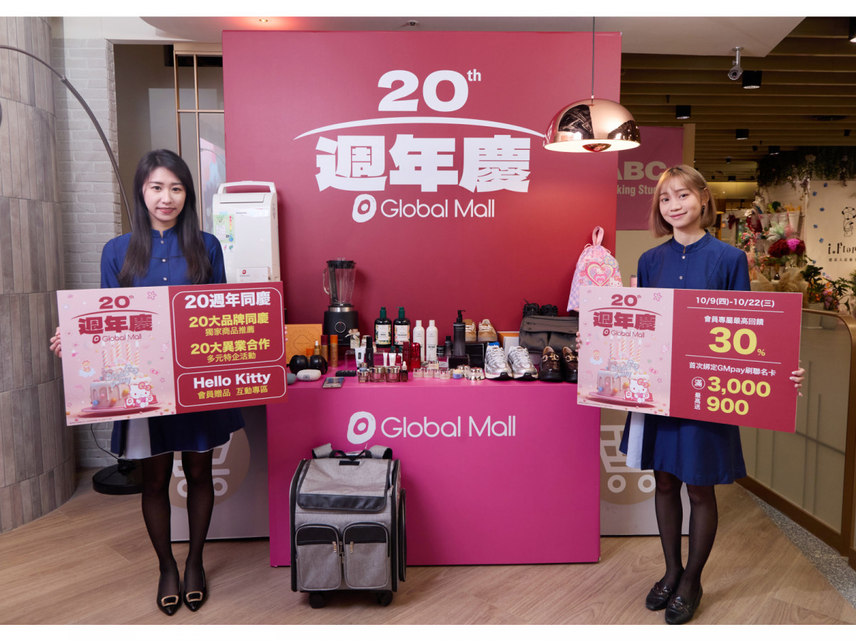 為歡慶20週年,Global Mall推出「20大好禮抽獎」活動,即日起於指定專門店累計消費滿3,000元,就有機會將黃金飾品、東京三麗鷗彩虹樂園雙人遊、精選小家電等多項好禮帶回家。