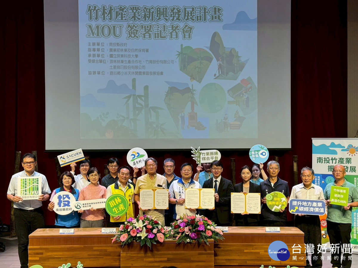 南投縣是全台重要竹產區,縣府推動「南投縣竹材產業新興發展計畫」,2日特結合屏東科技大學,搭建「南投縣竹業振興媒合平台」。農業處長蘇瑞祥代表縣府和土星烏日股份有限公司簽署合作意向書(MOU),並將建立竹產業穩定供應鏈,鏈結國際碳權市場。