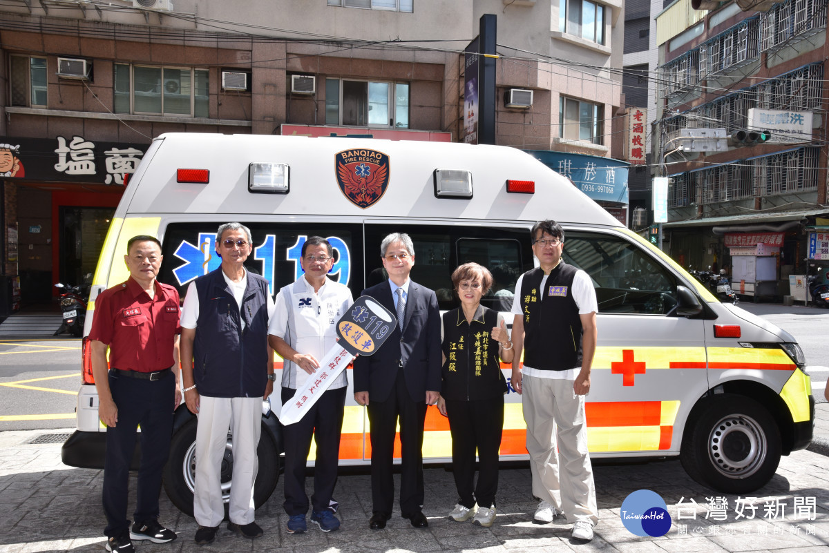 為提升板橋區緊急救護效能,永福企業郭枝群、郭建文總經理代表父親、前董事長郭永福先生完成長年心願,今(8)日於第一救災救護大隊板橋分隊舉行救護車及急救設備捐贈典