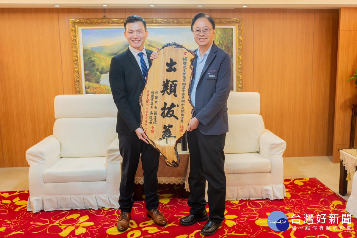 張市長指出,楊璽不僅在學業與職場表現傑出,更以行動實踐公益精神與青年典範,積極參與國際交流與青商會事務,展現桃園青年敢夢、敢為的特質。市府將持續支持青年多元發展,協助更多青年走向國際舞臺,為城市帶來更多榮耀。