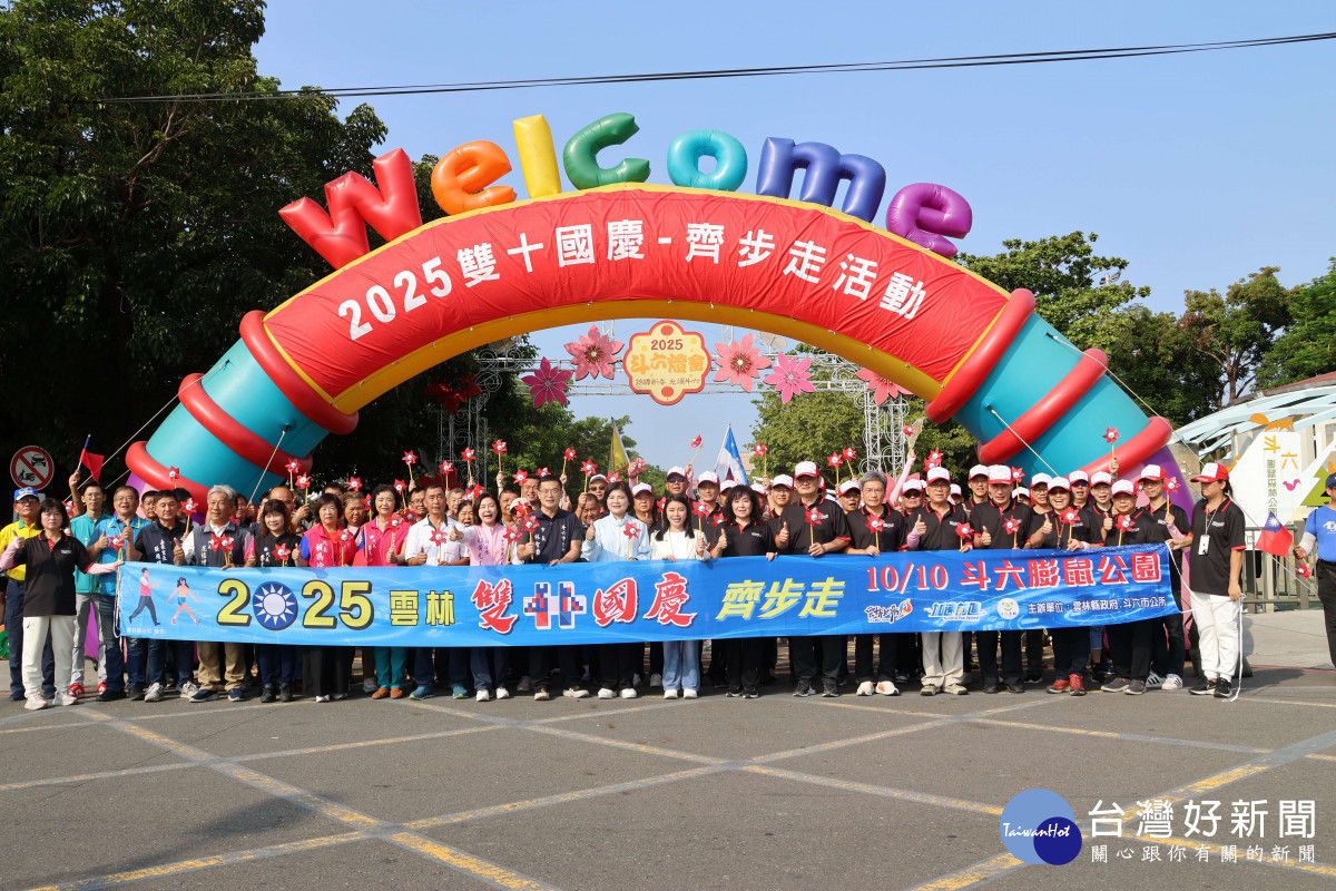 光輝雙十國慶,雲林縣政府與斗六市公所今(10/10)一早於斗六膨鼠公園舉辦「2025雙十國慶齊步走」升旗暨健行活動,縣長張麗善率縣府團隊、斗六市長林聖爵率公所團隊及立委張嘉郡、雲林後備指揮部陳維忠上校、議員陳永修、陳芳盈等諸多嘉賓出席與民眾一起大聲唱出國歌,敬禮看著國旗升起,更透過健走的方式為國家慶生,中華民國生日快樂。