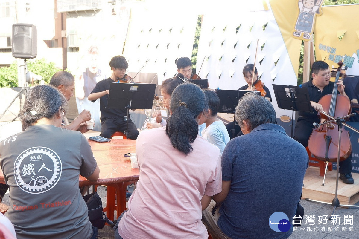 接著是本次店家串連計畫合作研發的料理發表與紀錄影片首發,龜山眷村故事館與龜山在地手作烘焙店「阿枝與他的小夥伴*小枝」合作,研發出眷村料理新風味,並於發表會現場限量提供餐點試吃。同時也發表訪談紀錄影片,分享料理研發與居民交流的溫馨過程。在品嘗眷味的同時也能享受音樂表演,邀請元智弦樂社帶來經典老歌演出,用音樂喚醒共同記憶。