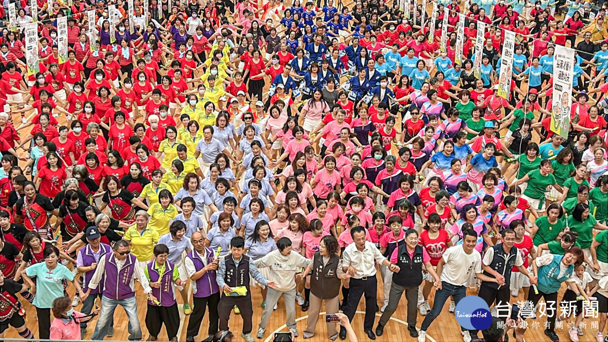 各鄉鎮共50支隊伍的長輩們精心打扮,帶來多樣舞蹈、功夫等展演,最後更由舞蹈老師領軍,邀請縣長與長輩們嗨跳「台灣尚勇」應援舞,眾人揮動雙手、步伐整齊,氣氛嗨到最高點。