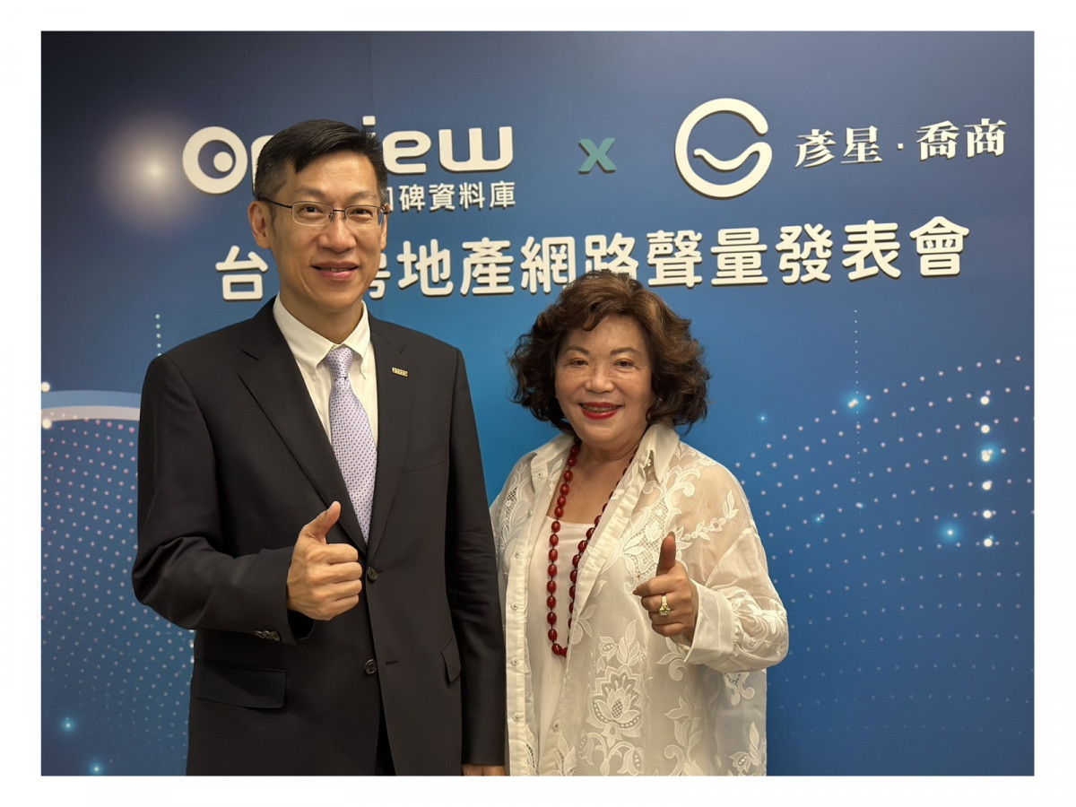 彥星.喬商廣告傳播事業群董事長劉安立(圖右)則表示,雖然輿情聲量跟市場買賣數據同步有下降的走勢,但下降幅度相對溫和,顯示大多數買方因銀行貸款成數受限而採取觀望的心態,進入冷靜期但未見熄火。