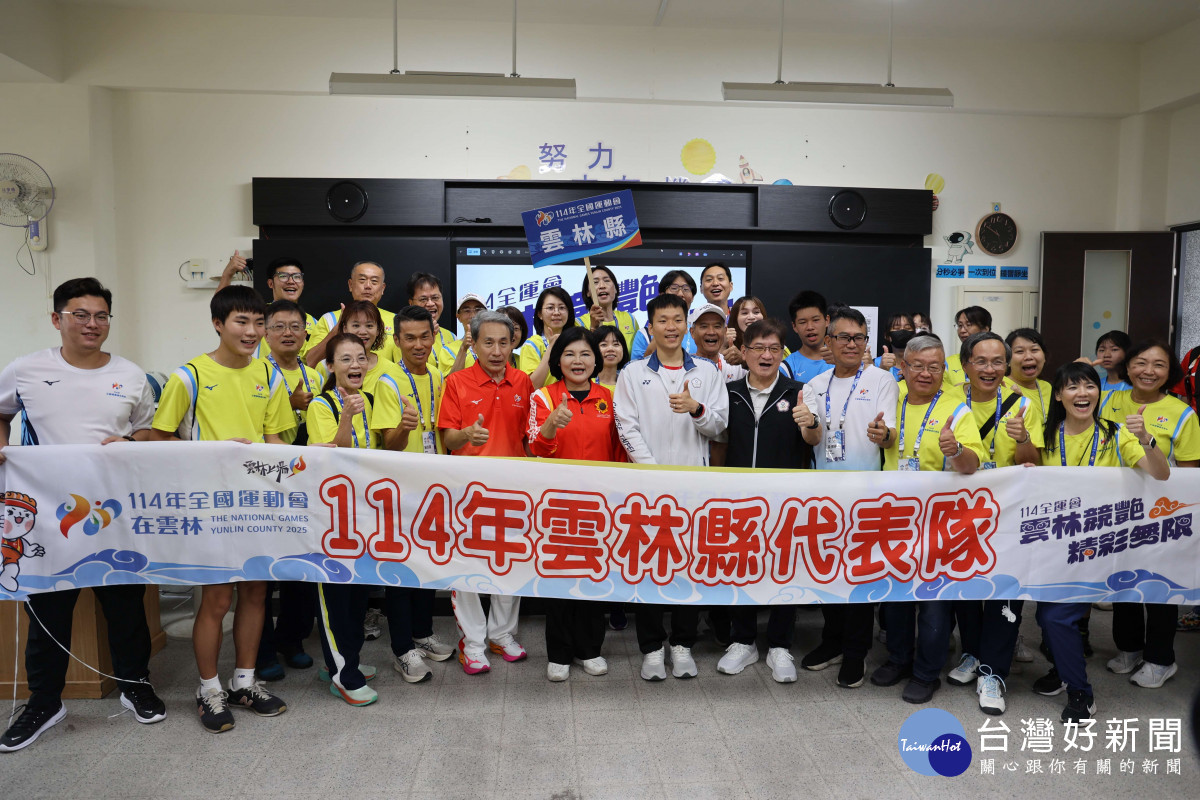 114年全國運動會昨晚於雲林縣立田徑場盛大開幕,雲林縣長張麗善今(19)日上午率縣府教育處長邱孝文、全運會六部菁英團隊陪同運動部長李洋前往團本部慰勞各縣市代表團。