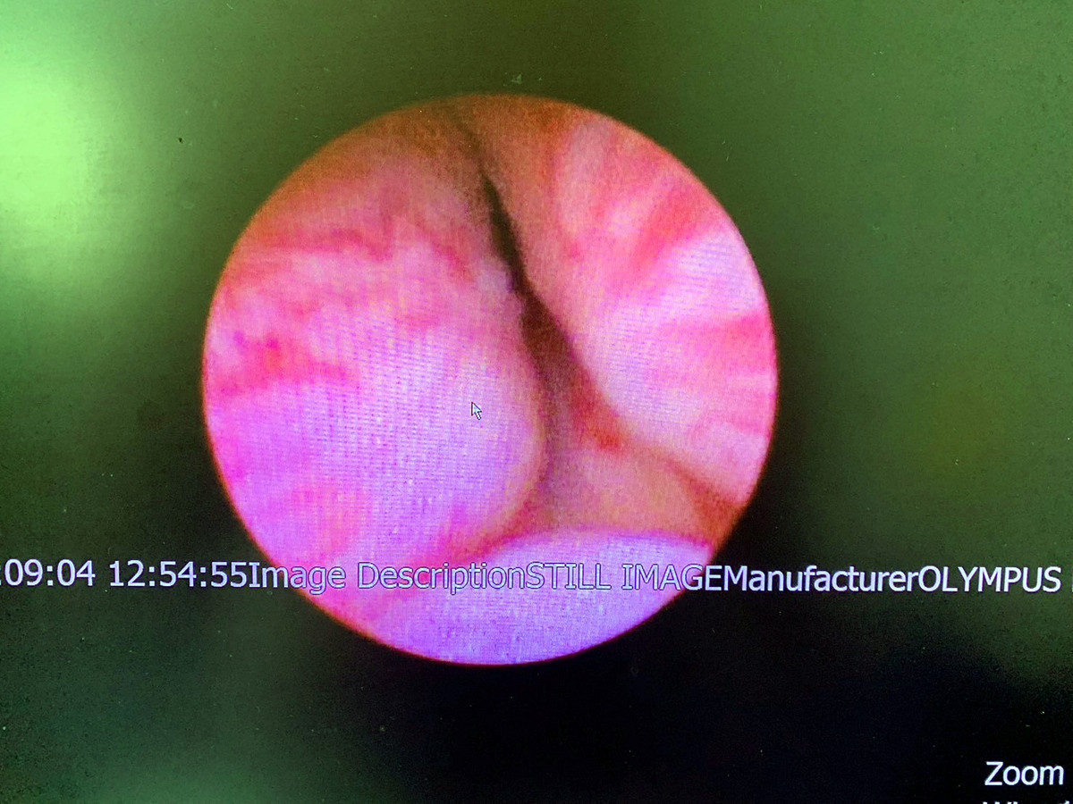 L先生,本身有僵直性脊椎炎,長期頻尿及小便解不乾淨,診斷為攝護腺肥大(大約48cc),於門診治療,服用攝護腺放鬆及縮小藥物後,排尿也沒有顯著改善,有考慮手術治療,但擔心出血風險。後來,在醫師建議下接受攝護腺拉開手術(如圖三及圖四),術後不僅沒有血尿情形,小便也恢復暢通,並完全停用攝護腺肥大藥物。