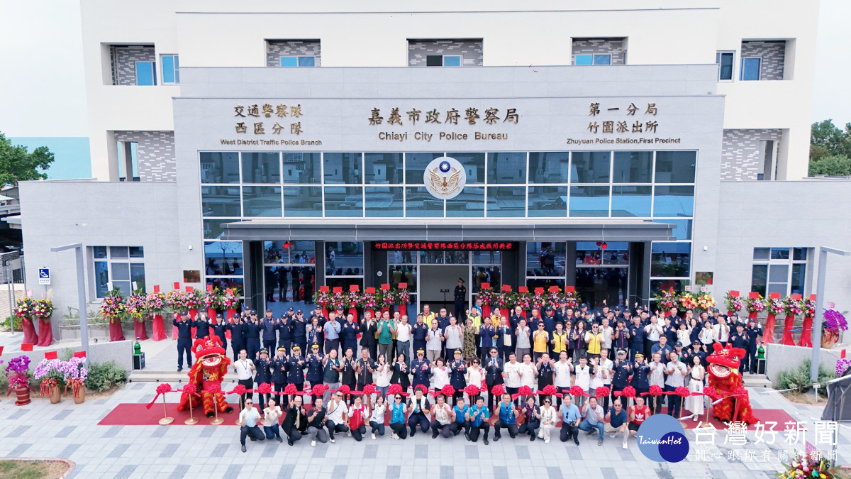 嘉義市警察局新建竹園派出所與交通隊西區分隊辦公廳舍今(23日)天舉行落成啟用典禮,嘉義市長黃敏惠親自主持,立委王美惠、議長陳姿妏及多位議員皆出席剪綵,場面隆重熱鬧。