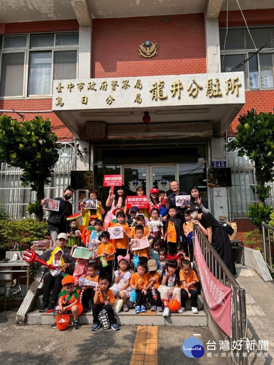 因應萬聖節,一群來自「野田音樂繪本藝術教室」26位小朋友打扮成各種應景造型聚集在分駐所前討糖,員警也精心包裝餅乾糖果迎接這群卡哇伊鬼怪前來搗蛋,其中有小朋友扮成西瓜及南瓜,逗趣模樣讓副所長自掏腰包購買泡泡水,分駐所頓時增添不少歡樂的氛圍。