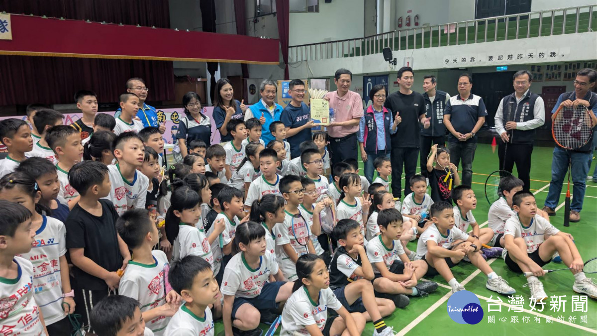 贈球儀式後,南屯國小羽球隊的小選手們並與立委廖偉翔、運彩公會理事長何昱奇等貴賓進行了一場逗趣的友誼賽,小選手們對上大人物,架勢完全不輸給大人。