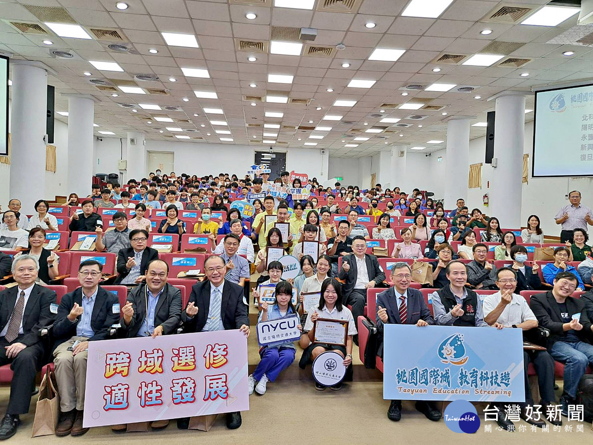 因應AI科技與全球化浪潮的挑戰,桃園市積極推動科技輔助學習、普及化數位課程。114年度起,結合國立中央、清華、陽明交通及政治大學等頂尖大學的學術資源,以科技教育為核心、國際教育為支點、永續學習為目標,採「模組化」、「數位化」、「跨域化」設計,兼具理論深度與實作導向,推動「關鍵科技探索」高中市本課程。同時以「桃園國際城 教育科技遊」跨域選修課程計畫攜手本市高中職、大專校院及國家場館,聚焦新興科技、國際教育、永續發展等主題,合作開設假日及寒暑假營隊,透過跨界合作與資源共享,提供本市國、高中生多元探索興趣、加深加廣學習的機會。最後,王副市長期勉青年學子勇於探索、敢於跨界,並以永續思維行動,成為具備全球視野與在地行動力的新世代公民。