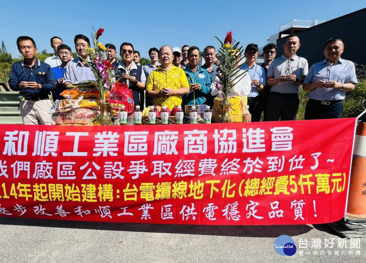 台電台南區營業處斥資5千萬元工程費預算,施作和順工業區電纜地下線路,5日舉行謝土儀式,台電台南區處長黃明舜、和順工業區廠協會榮譽理事長吳金寳、理事長陳文祥暨理監事代表上香祈福,未來將有穩定、正常的供電品質,不必再擔心外力介入造成瞬間跳電。
