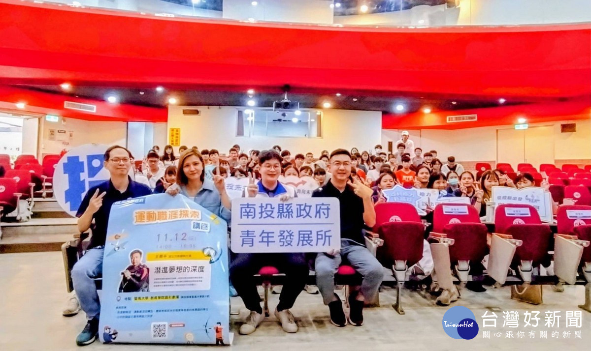 為使青年具備競技運動發展動能,也看見運動職涯的多元可能,南投縣政府於11月12日在國立暨南國際大學舉辦「運動職涯探索講座」,特別邀請潛立方旅館執行長王景平老師分享「從體育教練到打造亞洲第一座室內潛水旅館」,帶領青年深入探索運動與創業結合的無限可能。
