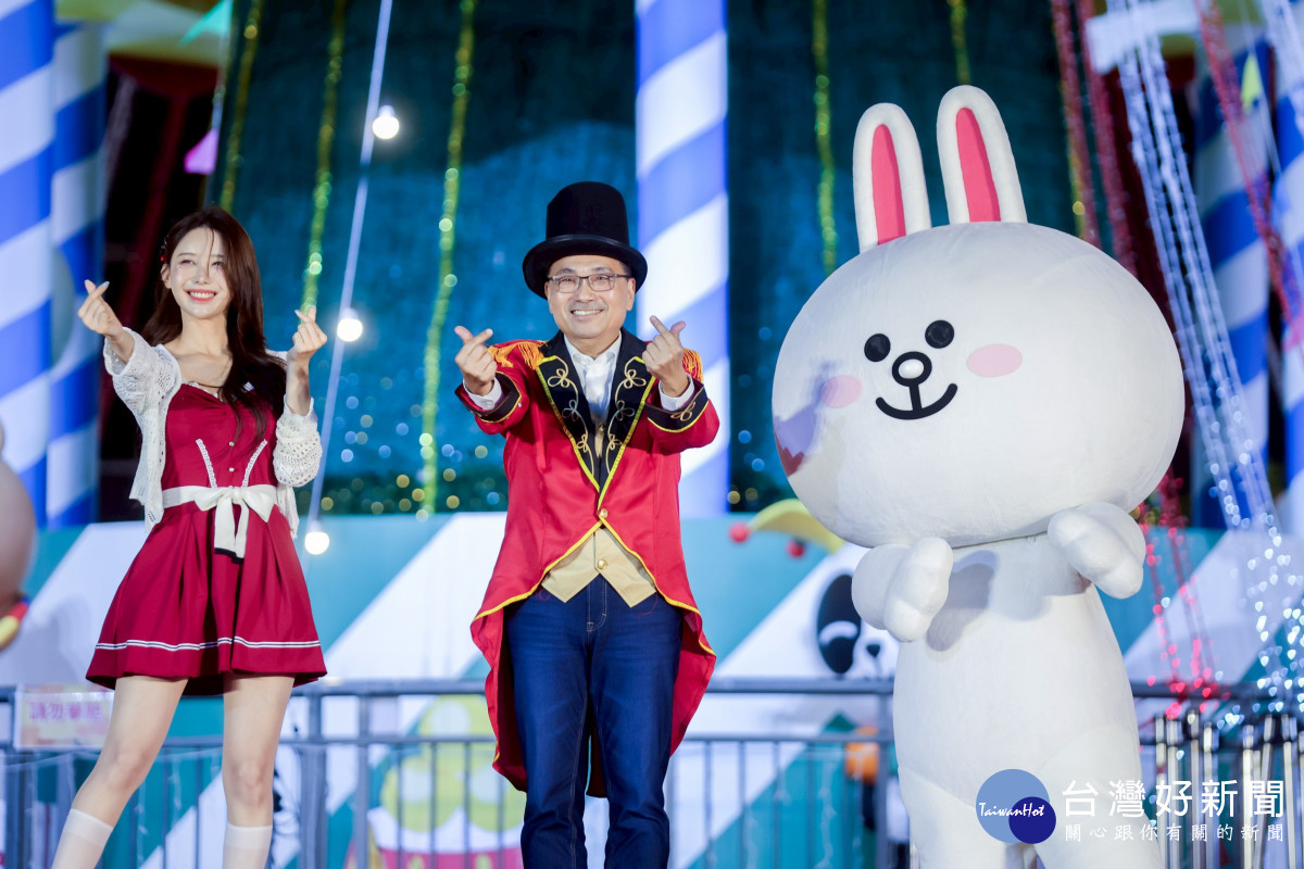 「2025新北歡樂耶誕城」今年與全球知名IP「LINE FRIENDS & LINE FRIENDS minini」合作,共同打造一場童趣療癒、繽紛歡樂的年度耶誕盛會,今(14)晚首先進行「耶誕馬戲開城SHOW」,點亮象徵夢想與歡樂的耶誕樹「歡樂馬戲棚」,以及周邊主題燈區裝置與璀璨燈飾。