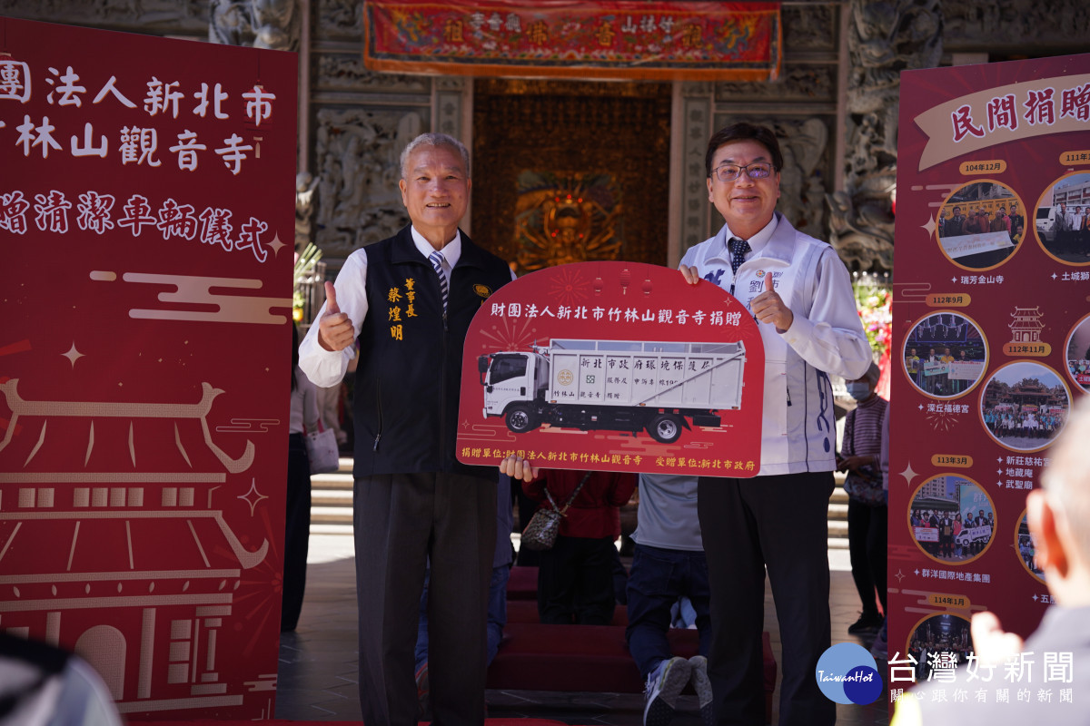 竹林山觀音寺董事長蔡煌明說,清潔隊員每日辛勞付出,無論酷暑寒風,皆堅守崗位維護市容整潔。由於林口區幅員遼闊、清運工作繁重,觀音寺深切體認清潔車輛的重要性,特別捐贈此輛資源回收車,期望能略盡棉薄之力,拋磚引玉,號召更多社會善心人士與宮廟團體共同響應,為環境保護與地方發展貢獻心力。