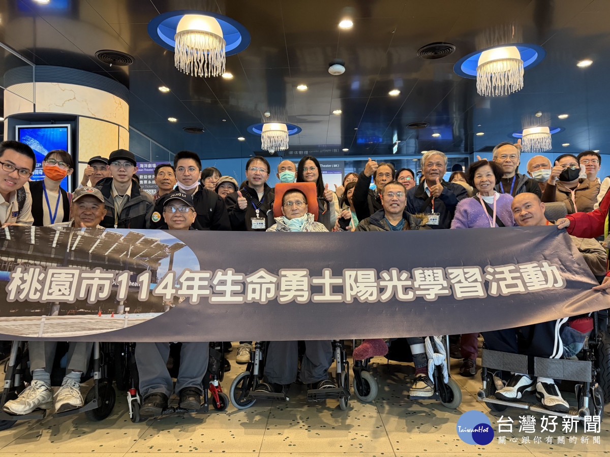 關懷服役期間受傷的袍澤弟兄,桃園市政府民政局「114年生命勇士陽光學習活動」,29日在國立海洋科技博物館及士林官邸公園舉辦,邀請義務役受傷退伍退役袍澤及其家屬約100人歡聚,並選派具備醫療專長的替代役男陪同,一同踏出戶外舒展身心。
