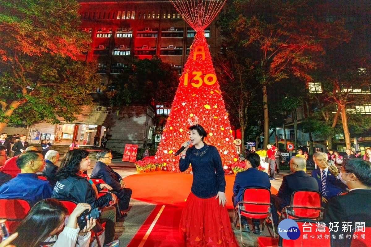校慶點燈祈福典禮是國北教大及校友總會、億光文化基金會主辦,結合「雙春金蛇年」意涵,用5000多顆金銀紅聖誕球妝點,在絢麗天幕光影折射的璀璨燈海下展開,吸引上千師生及各界貴賓同來祝賀,成為歲末最夯最飆的浪漫風情。