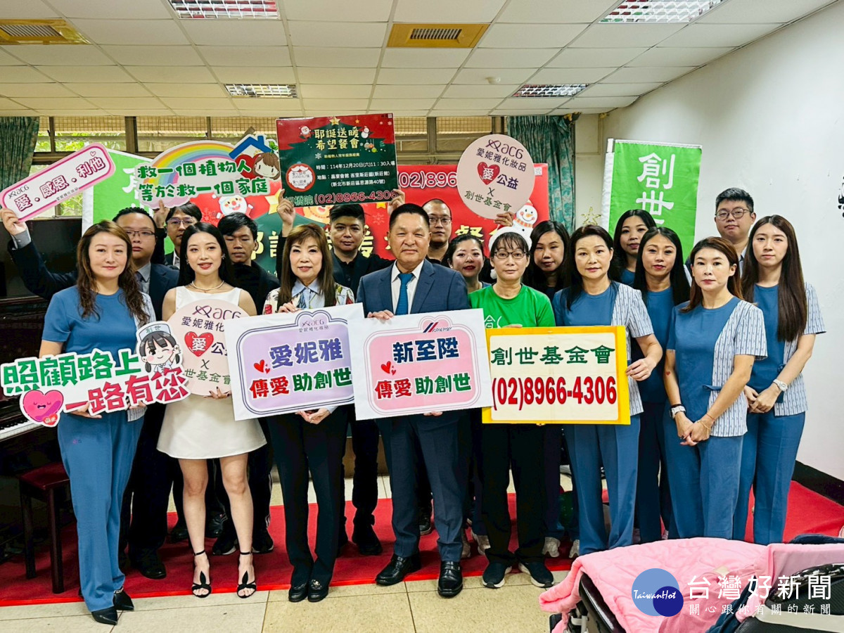 創世基金會板橋院李培菁院長說,創世在地深耕第39年,板橋院目前安養約51位植物人,每月照護成本高達2至3百萬元,奶粉、尿布等耗材需求龐大。非常感謝愛妮雅化妝品集團與新至陞科技股份有限公司於募款低迷時刻共同伸出援手,支持12/20(六)中午12點假新莊晶宴會館舉辦的「耶誕送暖愛心餐會」活動,也期待邀請社會大眾響應,凡捐款2,000元,可索取餐會入場券一張,或轉捐弱勢家庭,讓一頓飯的溫度化成支持生命的力量。