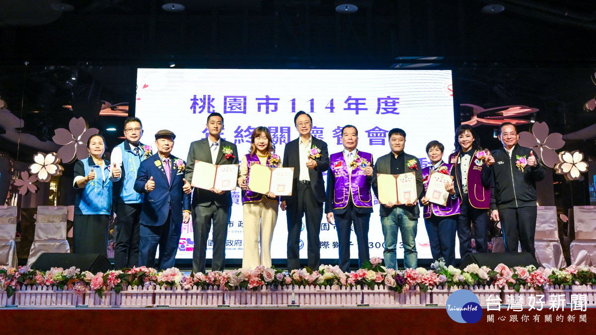 桃園市長張善政6日上午前往桃園區,出席「桃園市114年度年終關懷餐會暨公益捐贈表揚活動」。張市長表示,國際獅子會300B3區自葉順英總監創會以來,經周矢綾總監、徐聰明總監、黃文進主席及楊淑珠主席的帶領,短短三年即蓬勃成長至今日規模,成果令人敬佩,感謝國際獅子會300B3區持續支持市府相關政策,積極投入社會公益,造福社會,讓許多需要關懷的市民在歲末年終之際也能感受到社會溫暖。