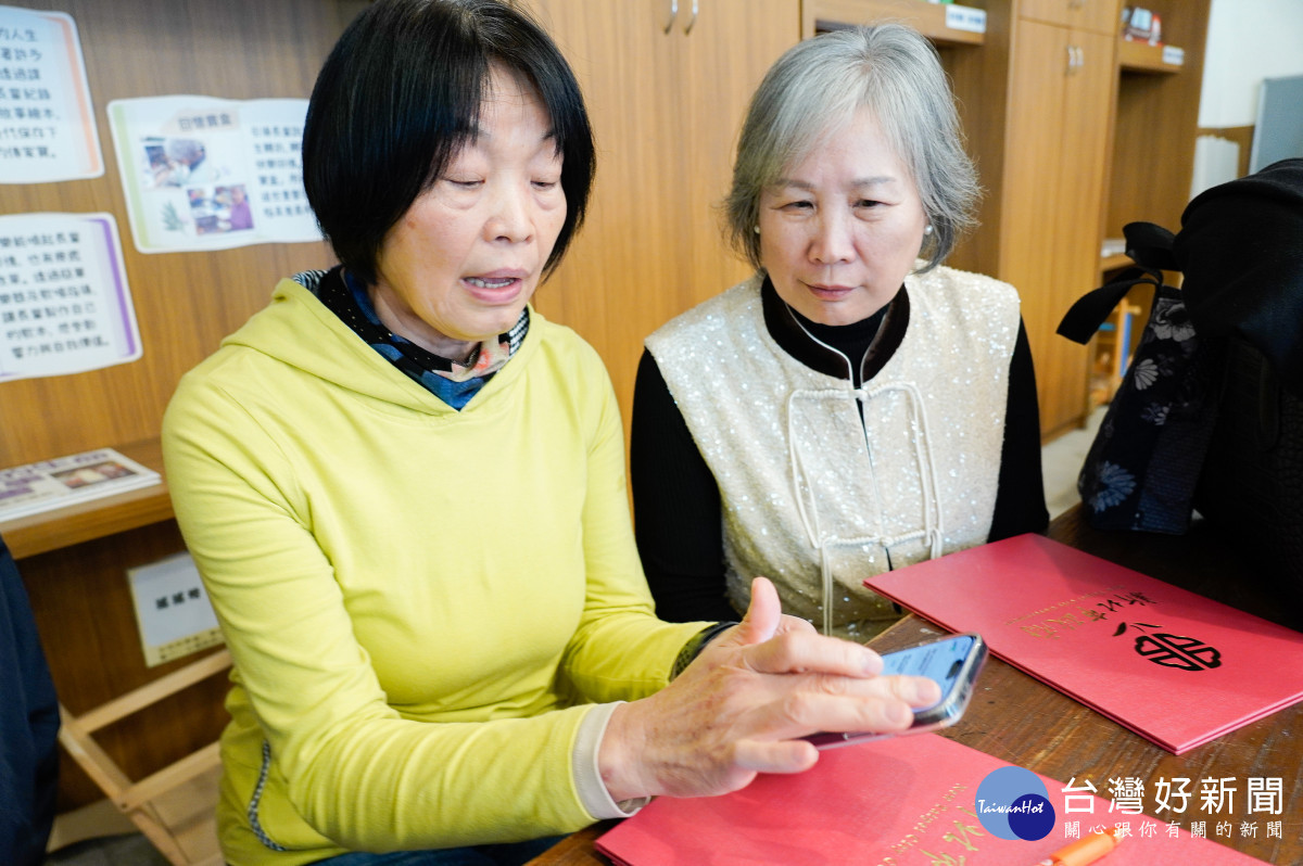 中和莒西社區理事長黃秀琴說,社區連續3年派人學習,有5位取得證書,回頭教其他長輩。長輩雖然拿著「咬一口」的手機,但面對複雜的功能很無奈,她就從玩接龍遊戲開始,慢慢引導輸入、複製、貼上、製作早安圖,到現在長輩學會了使用Google Map導航,長輩很開心。平溪老人會理事長林珂竹也說,自己要先學會了才能教長輩,感謝社會局和老大人的種子培訓,她學會了Line pay,用中華郵政綁定行動支付,出門不用帶錢包,回據點會教其他長輩。