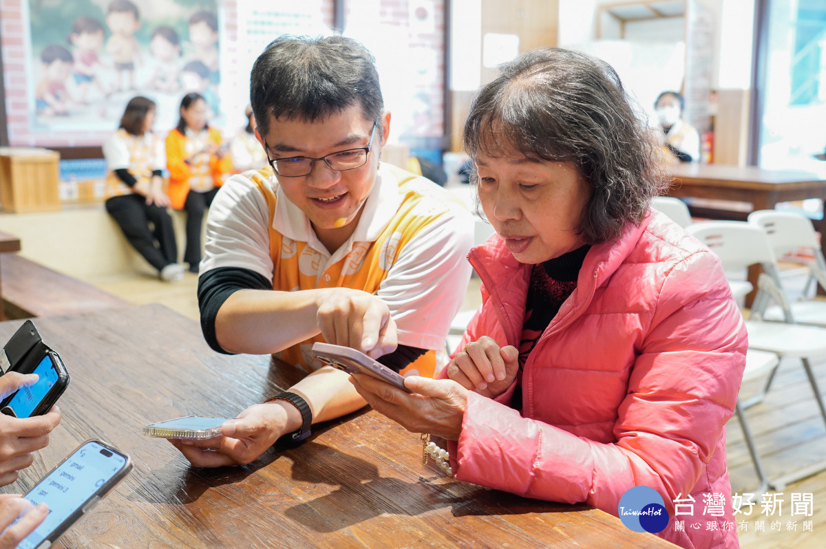 來自三峽崇德光慧據點的王麗芬說,她經過18小時的培訓和2個月的學習,帶領長輩如何下載並使用App,像財政部雲端發票、健保局的健保快易通,長輩上手後就不用再一張張對發票,也可以隨時了解自己的就醫和健康狀況。另外明年敬老卡擴大用途和點數,下載55688叫車,每趟可折抵85點(元),長輩學會了都覺得很好用。