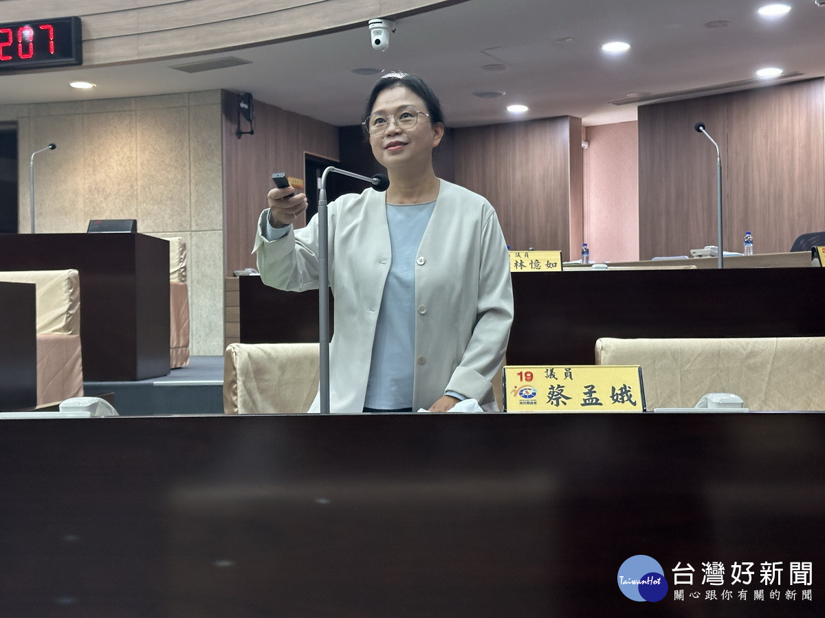 蔡孟娥議員要求環保局速處理廢棄油。( 記者扶小萍攝)