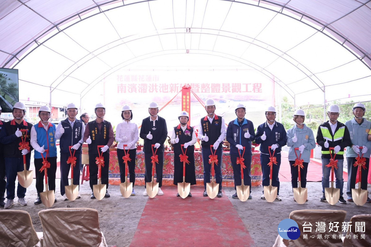 花蓮縣政府19日舉行「花蓮縣花蓮市南濱滯洪池新建暨整體景觀工程」動土典禮,花蓮縣長徐榛蔚親自出席並宣告本項重大防洪與城市景觀建設正式啟動,將強化花蓮市區防洪能力並提升南濱地區整體景觀風貌,期盼打造兼具防災、休憩與景觀價值的多功能滯洪池公園。