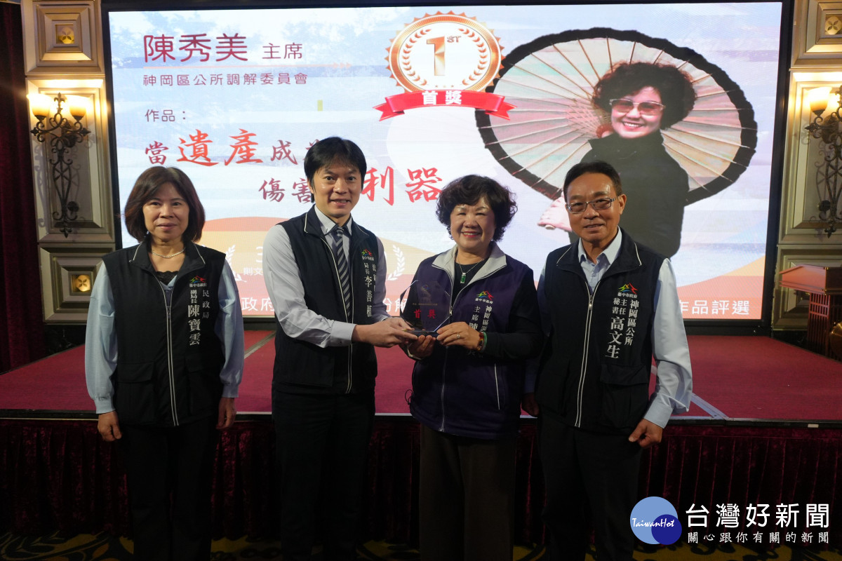 法制局指出,在這樣的背景下,許多調解委員在地方長期耕耘,實際展現制度成效。神岡區調解委員會主席陳秀美即是典範,她投入調解工作已19年,長期站在第一線協助民眾化解紛爭,深獲地方肯定。今年,她以作品「當遺產成為傷害的利器」榮獲市府法制局「調紛解結・情滿人間」徵文活動第一名,透過真實案例分享調解歷程,具體呈現調解制度在修復關係、撫平衝突中的關鍵角色。