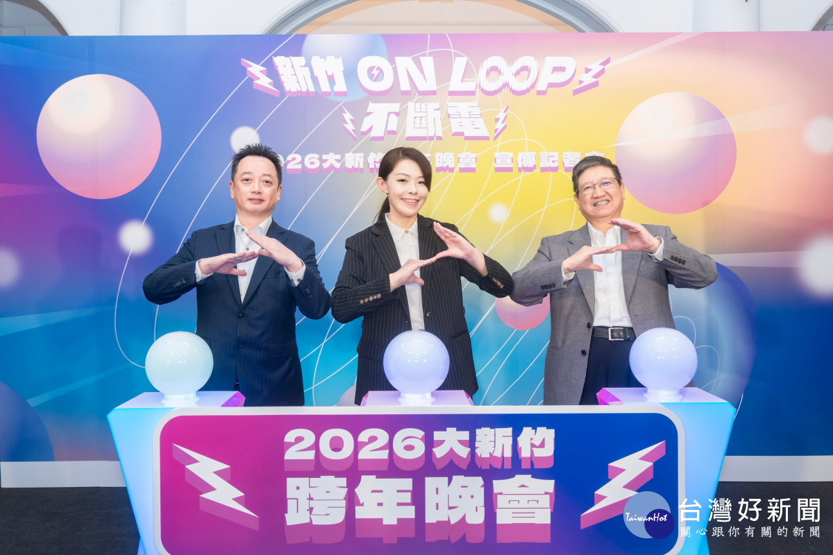 2026大新竹跨年晚會「新竹 ON LOOP 不斷電」將於12月31日晚間在大湳雅公園登場,新竹市政府22日上午於市府大廳辦理宣傳記者會,新竹市長高虹安及新竹縣長楊文科攜手搶先開箱跨年活動內容,邀全台民眾一同嗨翻新竹。