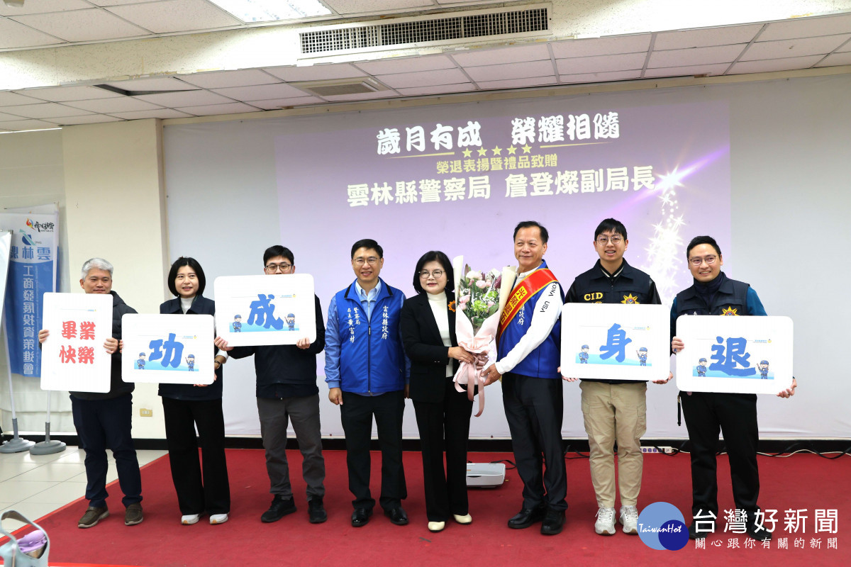 詹登燦副局長長年投入警政工作的生涯將畫下圓滿句點。詹副局長畢業於中央警察大學刑事警察學系及警政研究所,歷任臺南市政府警察局保防科科長、民防管制中心主任、督察室督察等重要職務,並曾擔任嘉義縣警察局副局長,警政歷練完整豐富。調任雲林縣警察局副局長期間,協助推動治安維護、防詐宣導及警政業務精進,展現專業與穩健的行政能力,深獲同仁與地方肯定。