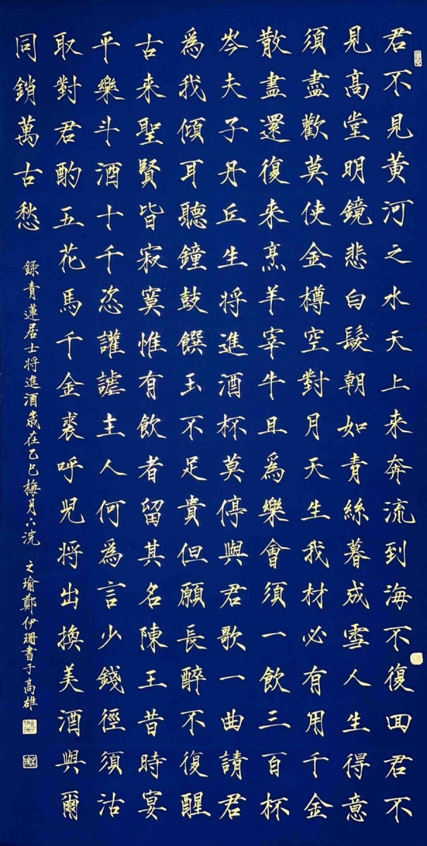 鄭伊珊同學指導老師、書畫系主任江柏萱副教授表示,鄭伊珊國小二年級踏上書法之路,10多年來未曾停歇,以勤學苦練自勉。入學該學系後,她的學習更趨全面性專業,得獎無數。113學年度以望洞庭湖贈張丞相為題,榮獲全國學生美術比賽大專組特優獎,114學年度則以季秋感田荒事為題獲得優等獎,表現十分優異。