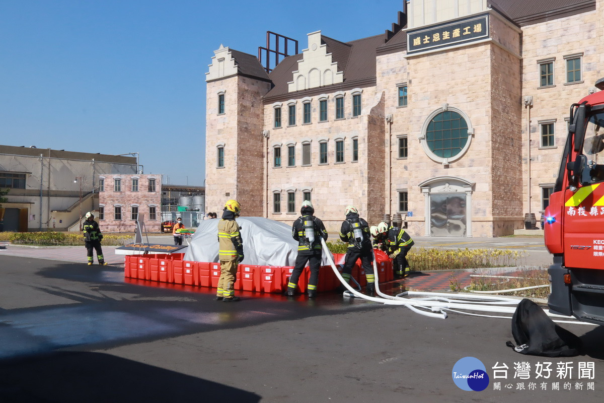 南投酒廠「自衛消防編組」也全體動員,展現落實自主防災的高效與能力。
