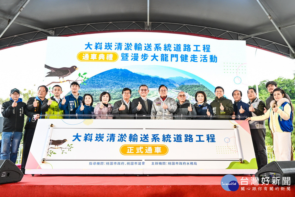 桃園市長張善政22日出席「大嵙崁清淤輸送系統道路工程通車典禮暨漫步大龍門健走活動」時表示,大嵙崁清淤輸送系統道路完工通車,將有效分流清淤車輛,降低對既有省道交通與行車安全的衝擊,亦能讓鄉親及遊客飽覽大漢溪沿岸風光,進一步帶動龍潭與大溪地區的觀光發展。